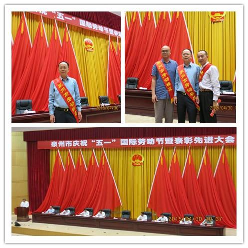 2015年4月30日上午,我司蔣欽全董事長參加了由泉州市總工會舉辦的“泉州市慶?!拔逡弧眹H勞動節暨表彰先進大會”,并榮獲“2015年泉州市勞動模范”稱號。