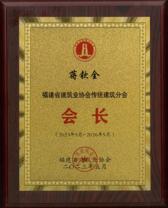 董事長蔣欽全受聘為福建省建筑業協會傳統建筑分會-會長