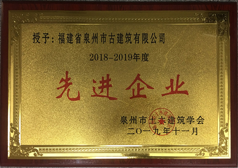 我司榮獲2018-2019年度泉州市土木建筑學會先進企業