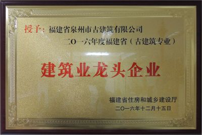 2016年度福建省(古建筑專業(yè))建筑業(yè)龍頭企業(yè)