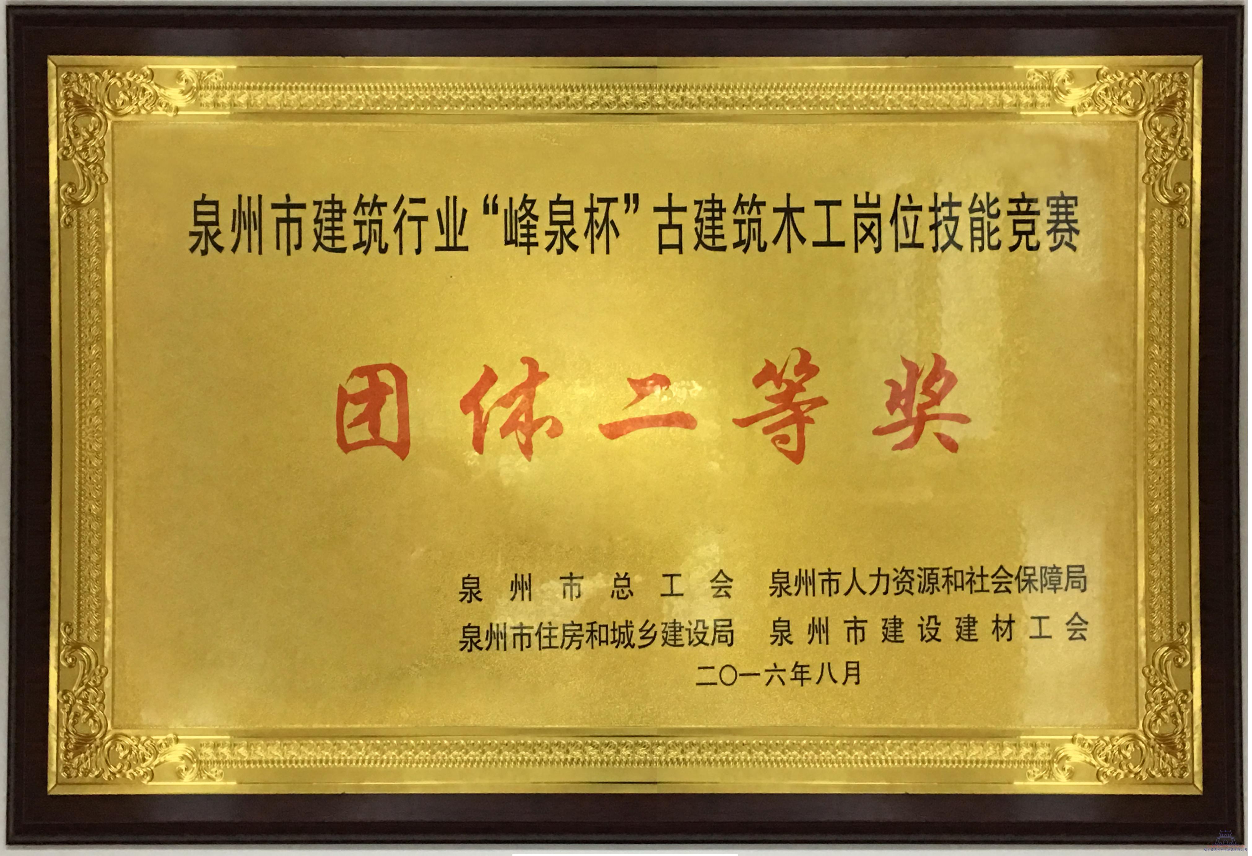 泉州市建筑行業(yè)“峰泉杯”古建筑 木工崗位技能競賽團(tuán)體二等獎