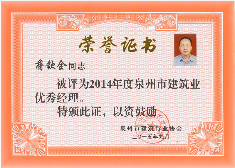 泉州市建筑行業協會優秀項目經理證書