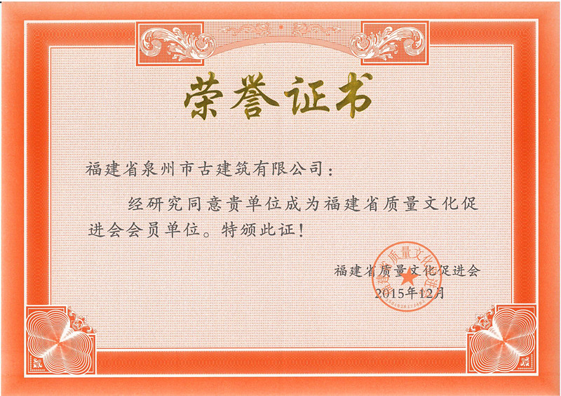 福建省質量文化促進會會員單位證書