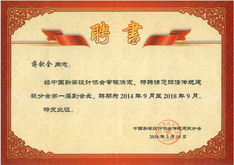 中國勘察設計協會副會長聘書