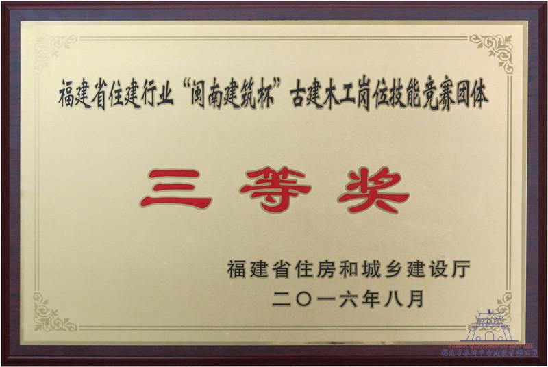 福建省住建行業“閩南建筑杯”古建木工崗位技能競賽團體三等獎